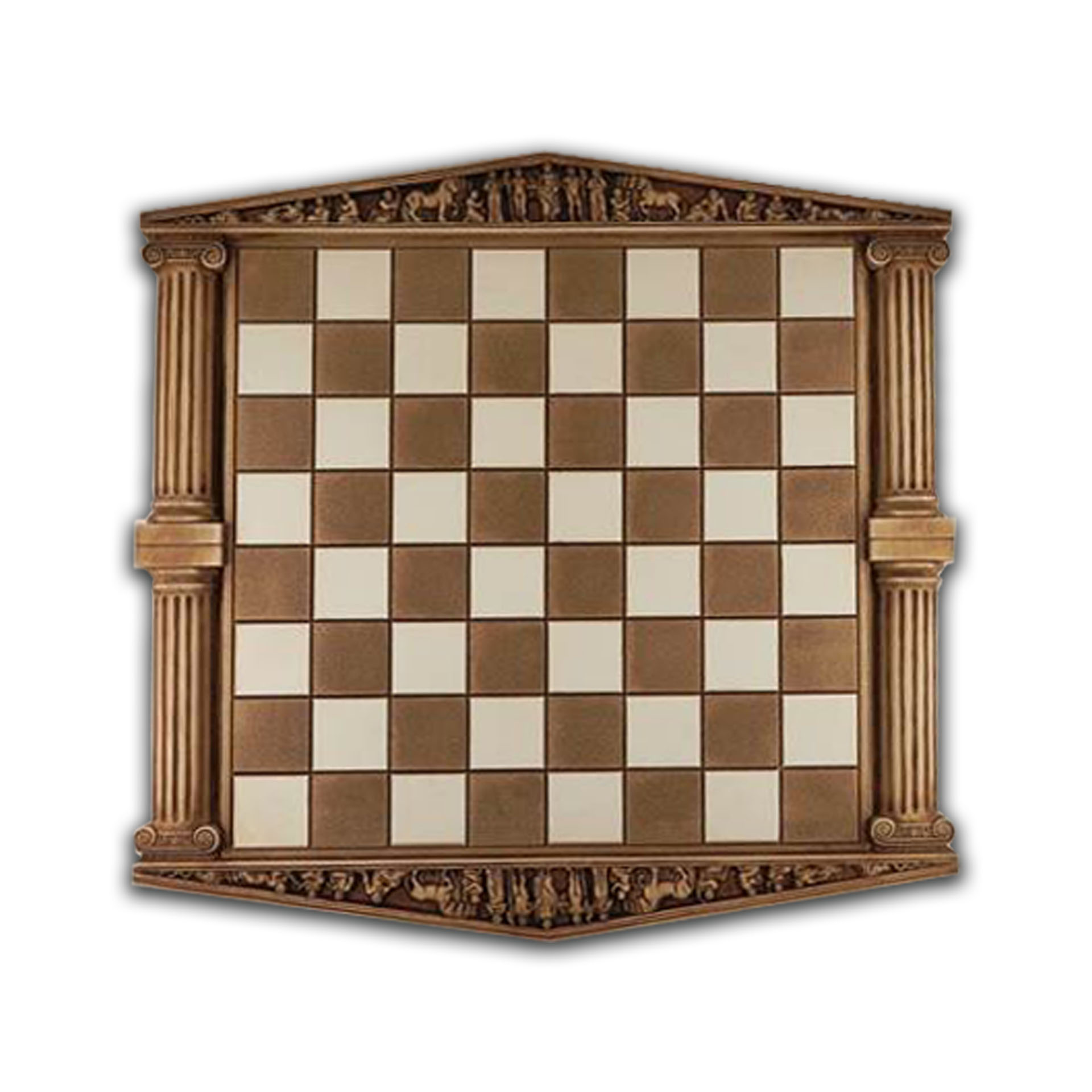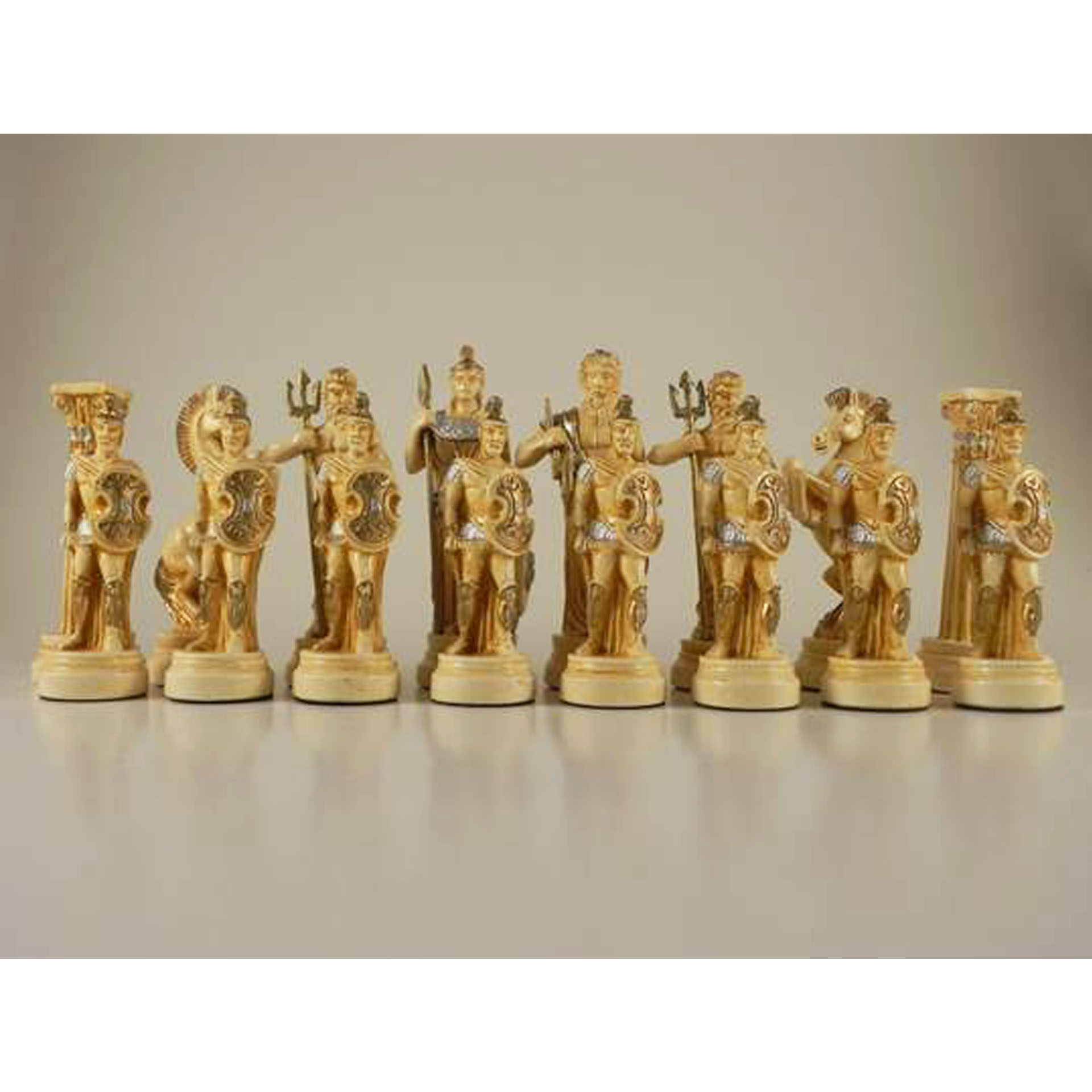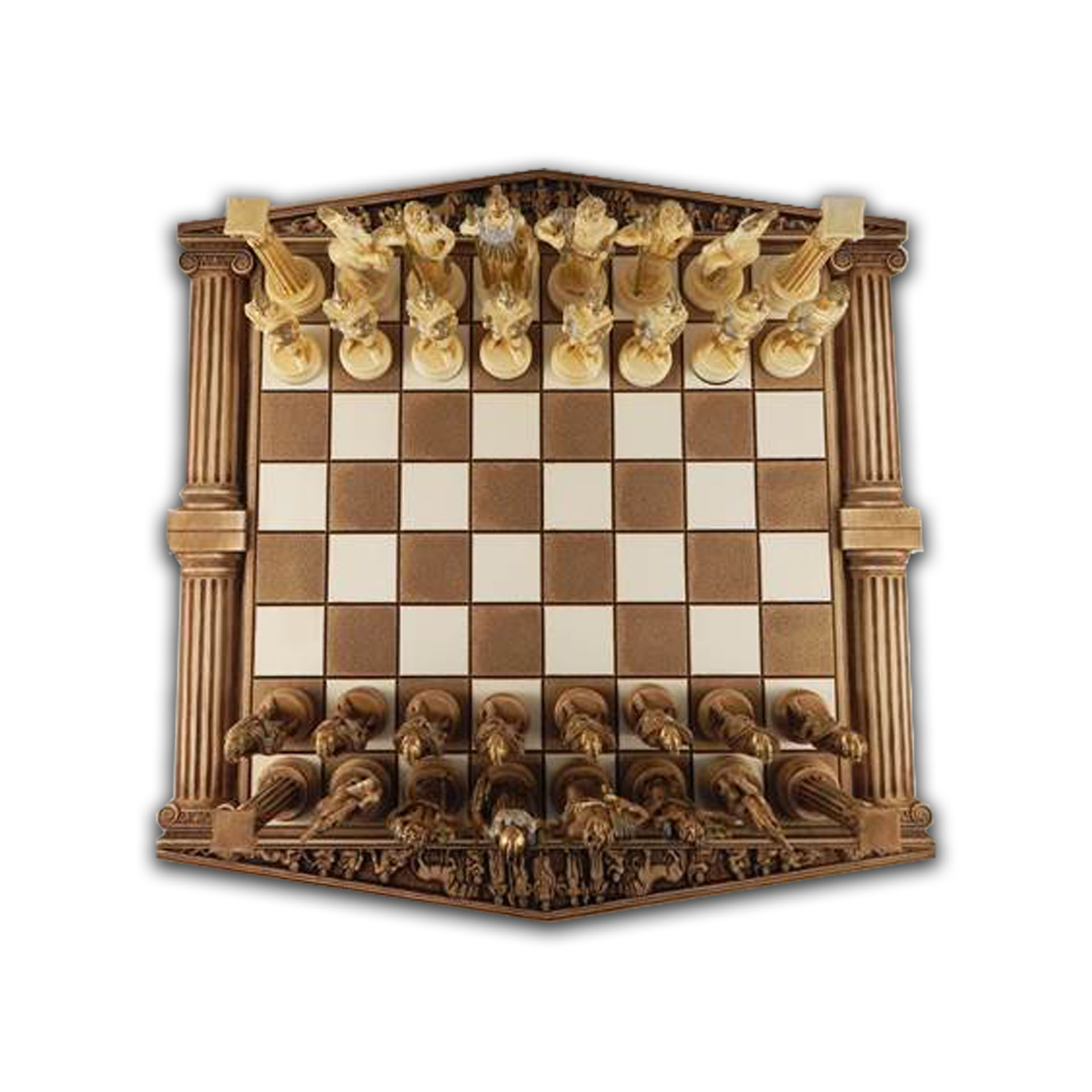 Ceramic hand-made chess pieces inspired from Greek antiquity and represent the most important Greeκ gods and the spartan warriors. The dimensions of the chessboard is 38*38cm. The height of the King is 9 cm.