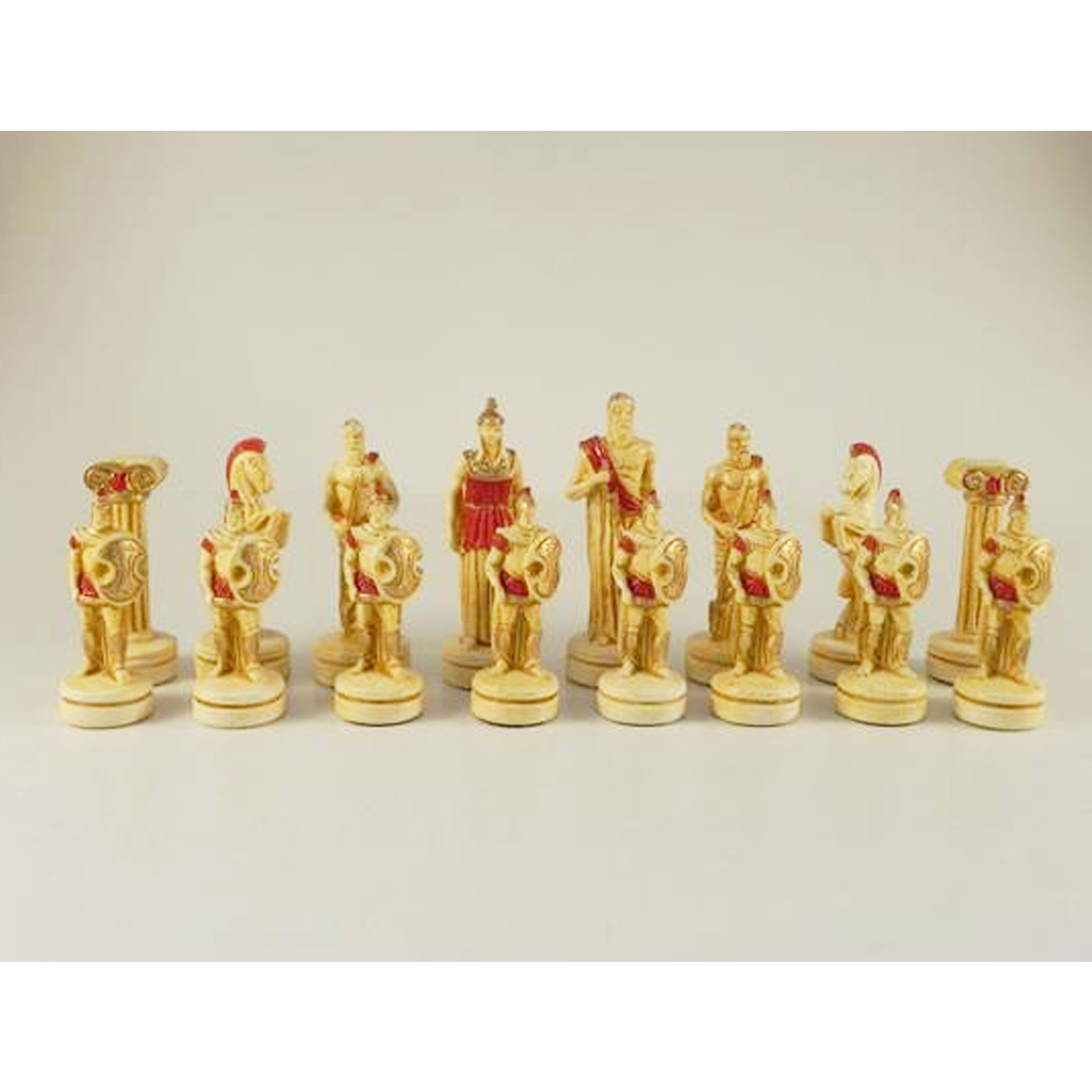 Ceramic hand-made chess pieces inspired from Greek antiquity and represent the most important Greeκ gods and the spartan warriors in red color. The dimensions of the chessboard are 30*30cm. The height of the King is 9 cm.