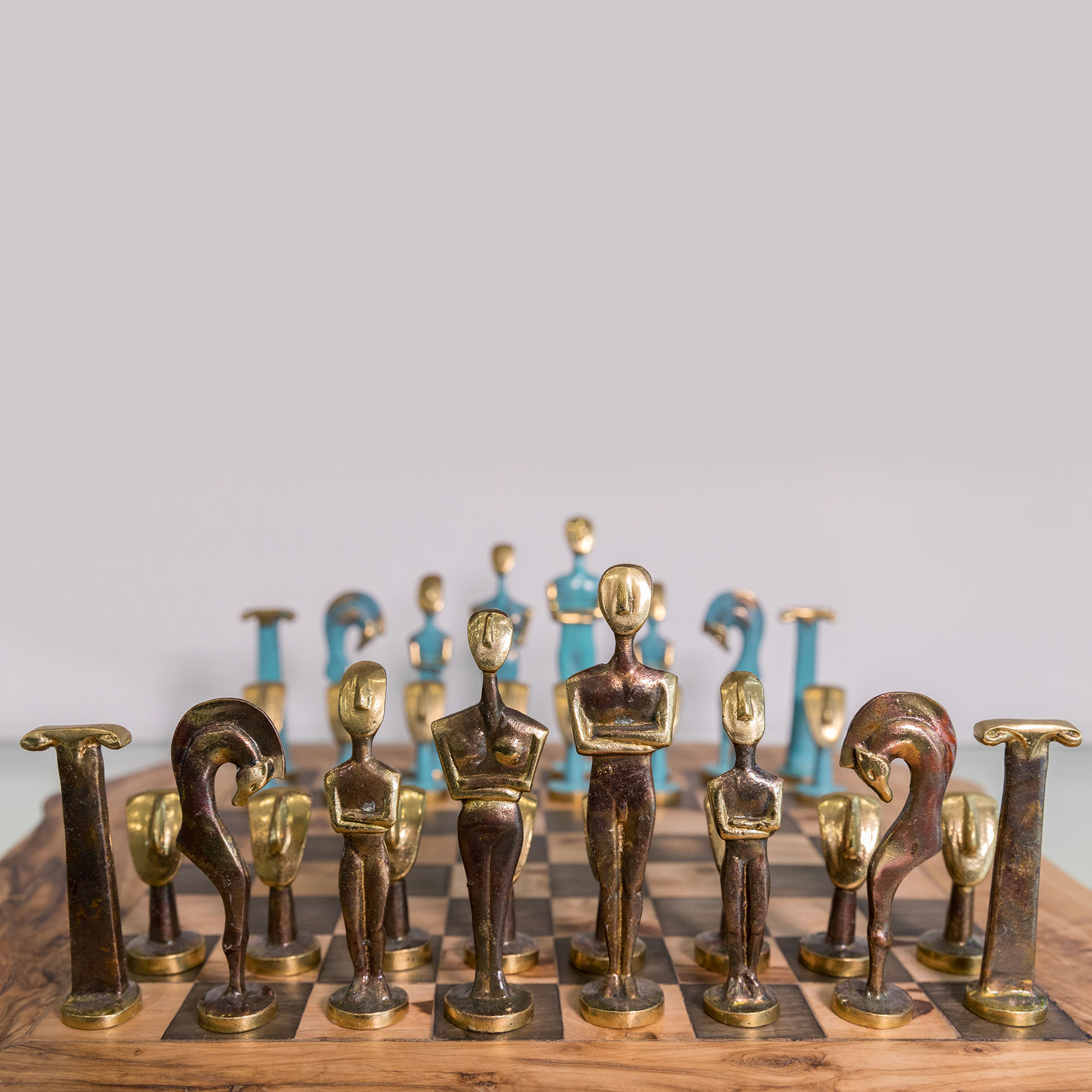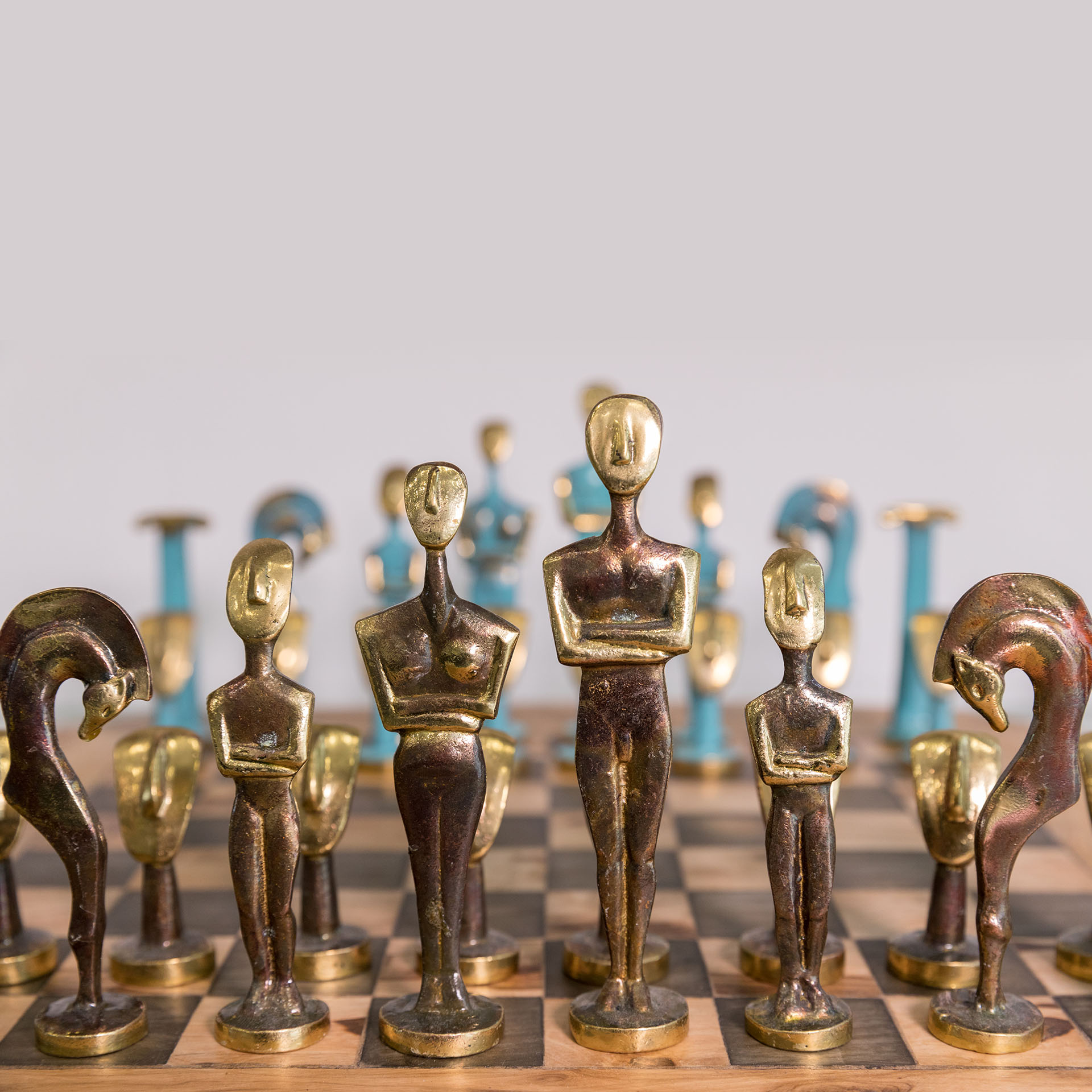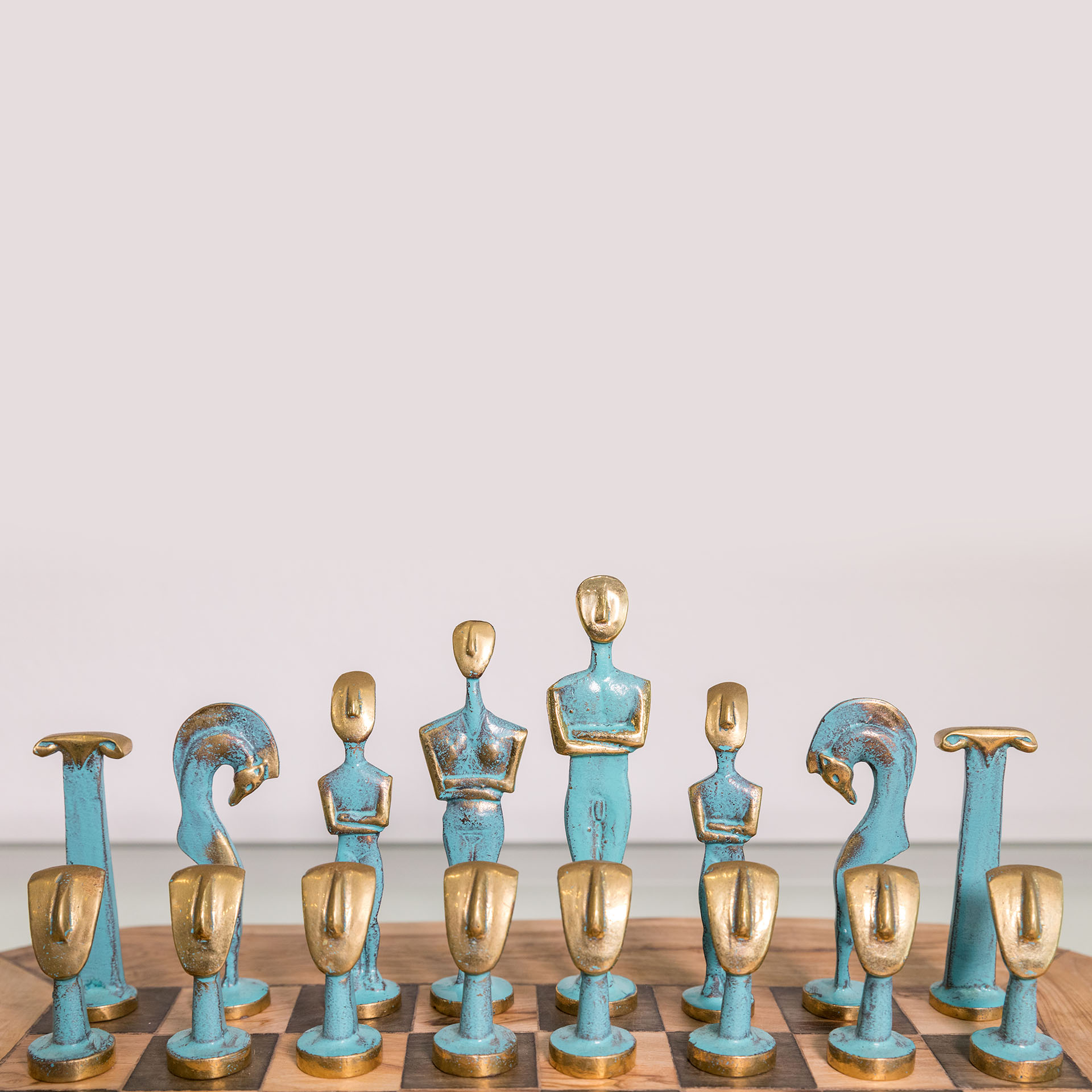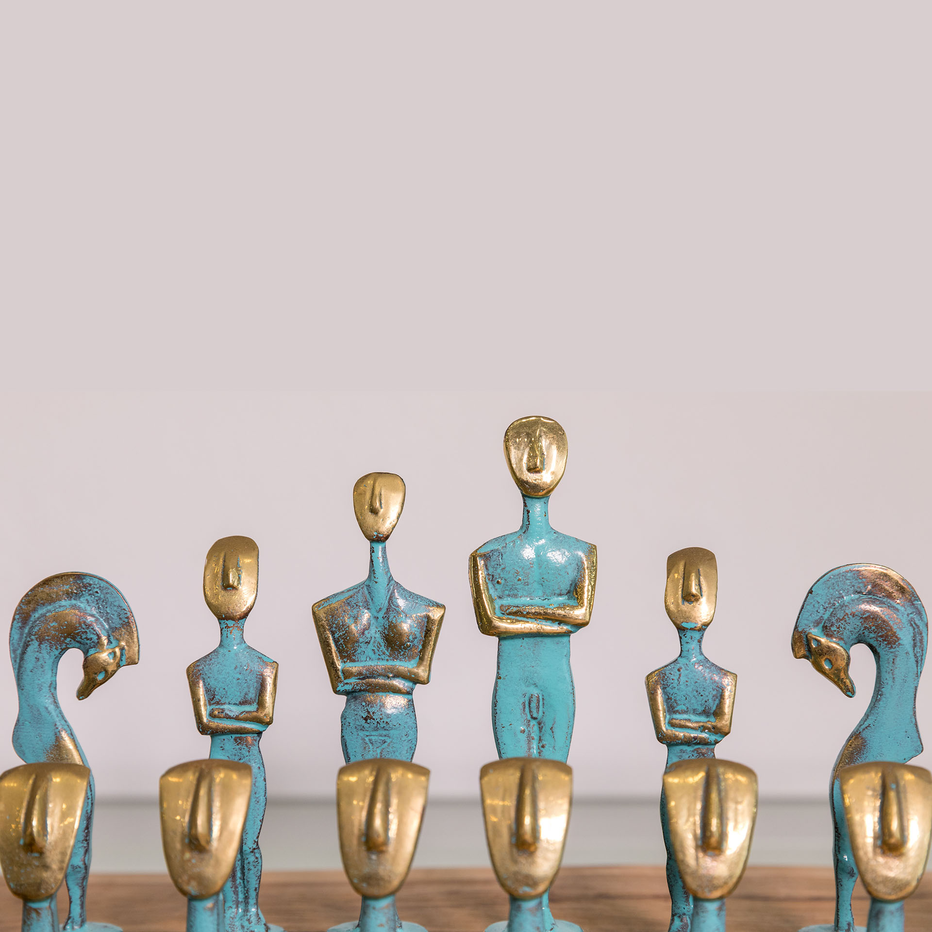Μπρούτζινα  κυκλαδικά πιόνια. Ύψος βασιλιά 14cm.