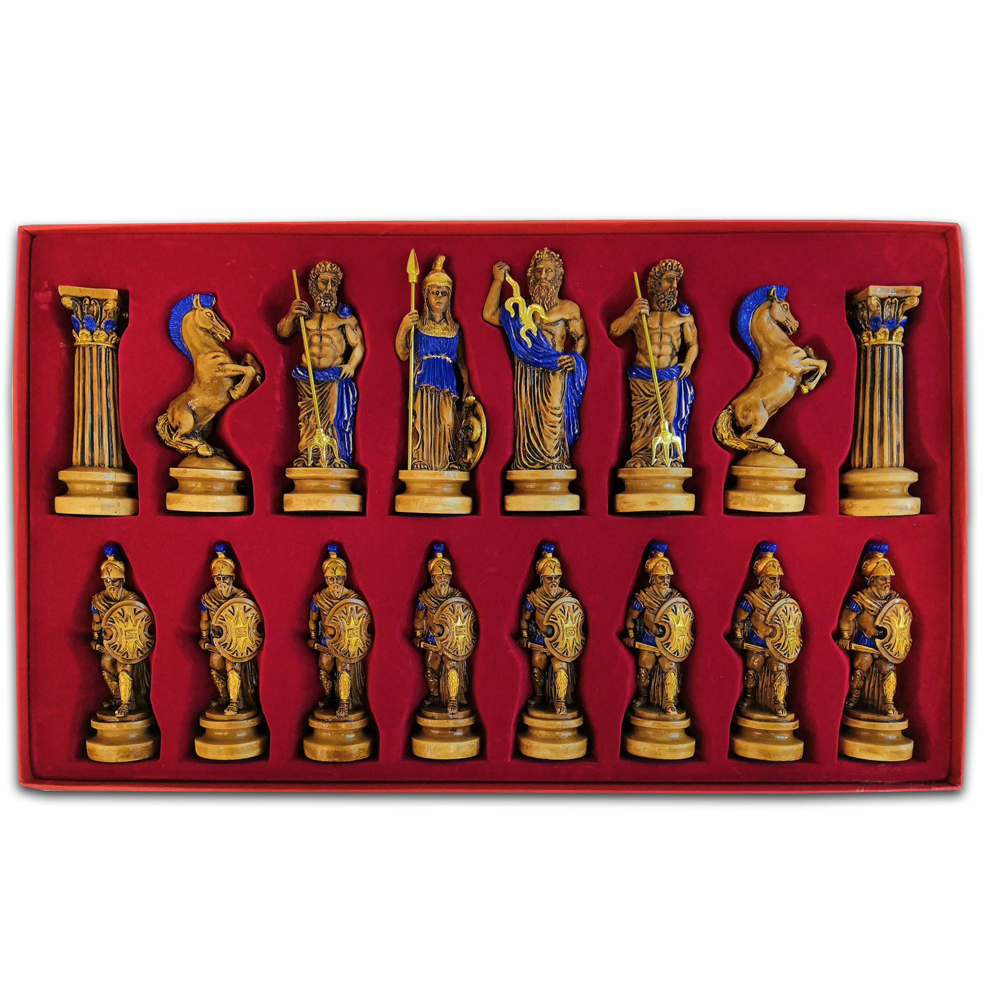 Οι πιο σημαντικοί θεοί της αρχαίας Ελληνικής Μυθολογίας (Δίας, Αθηνά, Ποσειδώνας) αποτελούν τις κεντρικές μορφές σε αυτό το υπέροχο σετ πιόνια πλαισιωμένοι από τις κολώνες του Παρθενώνα και τους Σπαρτιάτες μαχητές.